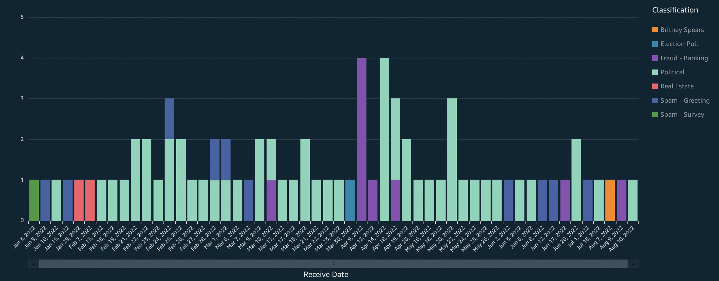 This was a frustrating outcome. At this point I decided to analyze all unsolicited messages I received since Jan 1, 2022 and look for common ground.