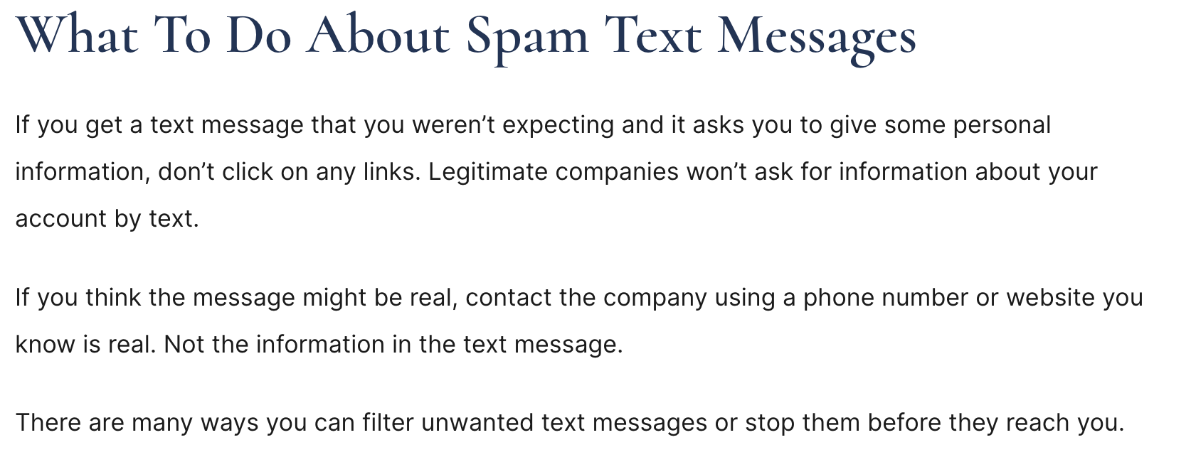 Initially, I used my phone settings to route all unknown calls to voicemail and silence unknown numbers for texts. This is a less than desirable response as it also skips legitimate calls from unexpected numbers. For example, my doctor or calls about an incident response in progress. Additionally, my voicemail alerts stopped once I reached 99 unread voicemails.