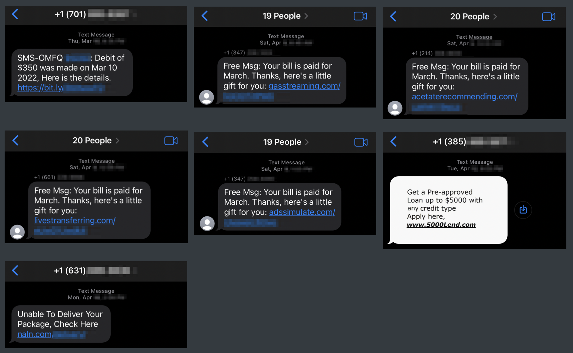 Ad-hoc blocking the sending phone number for banking fraud has had little to no effect on repeat messages. I suspect carriers quickly remediate the sources of activity out fairly quickly on their own, reducing any impact I can achieve.