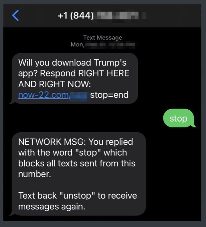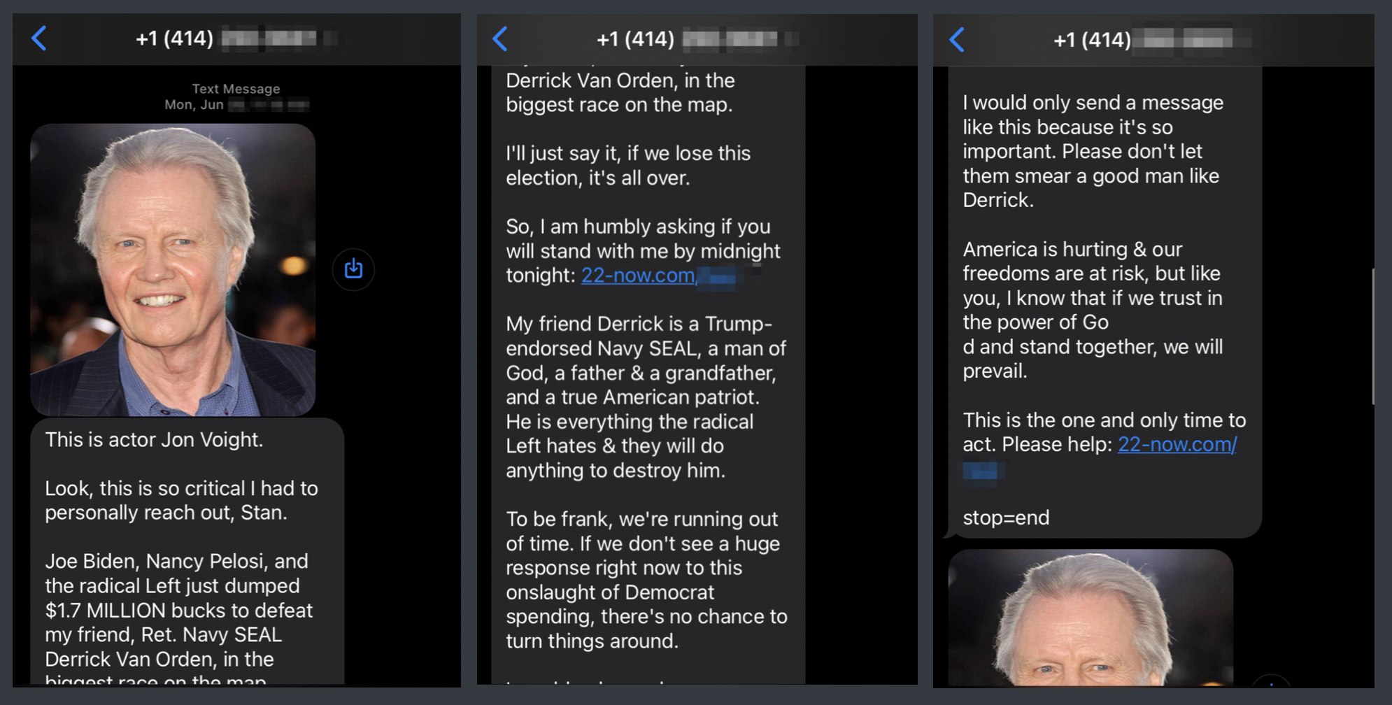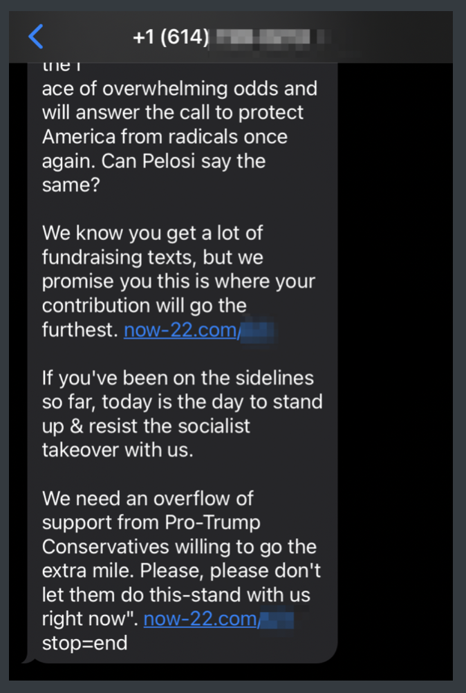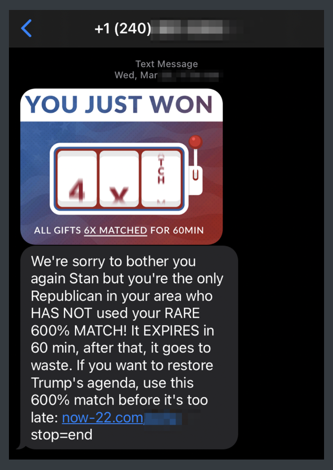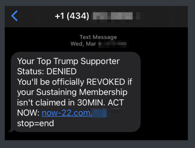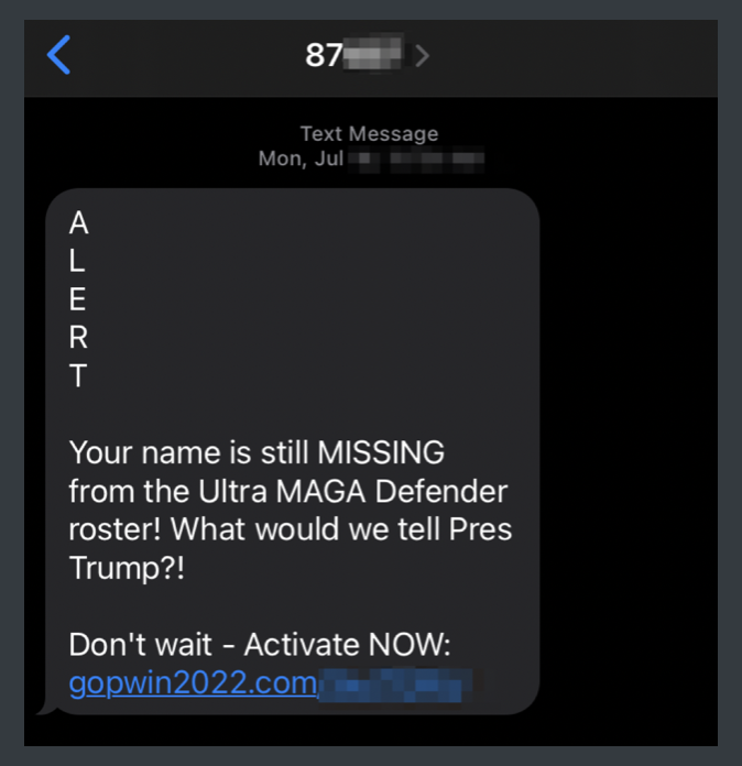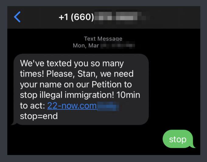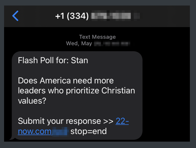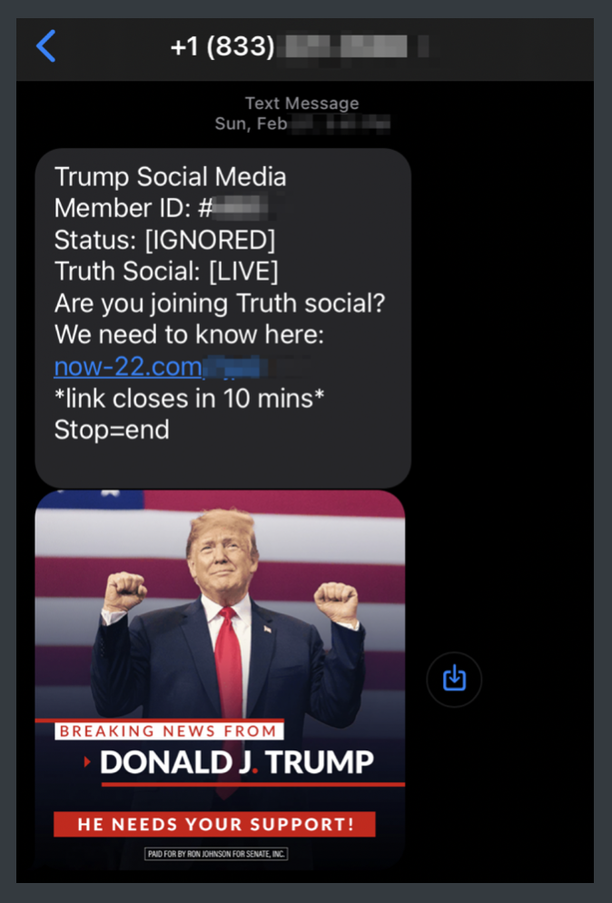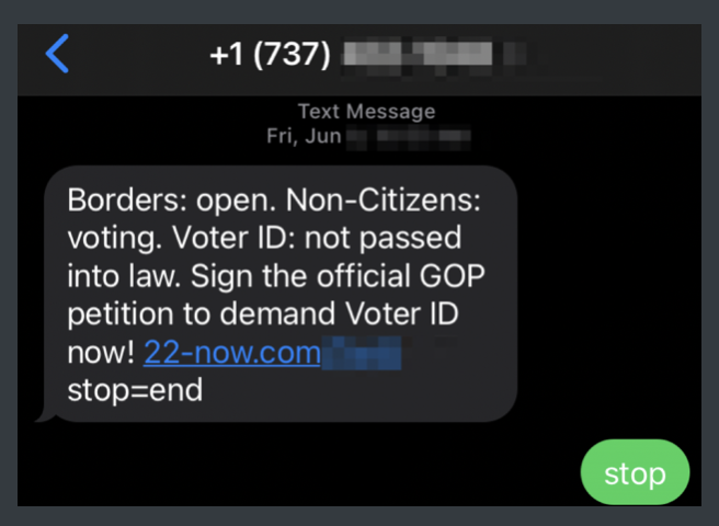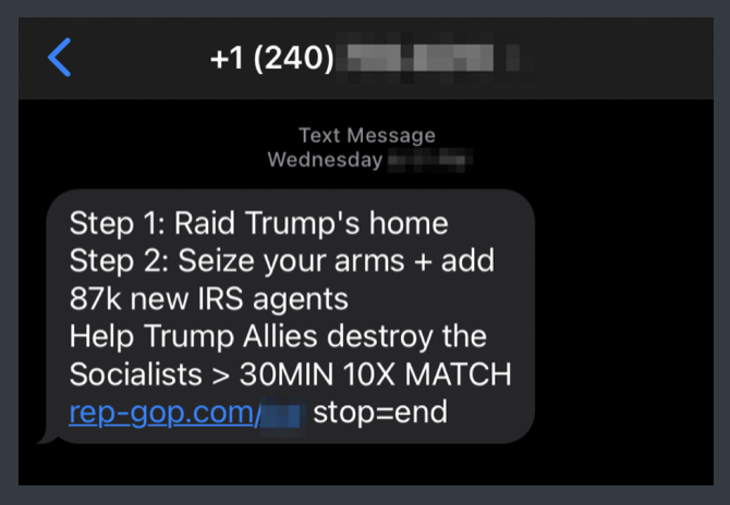 On August 10, 2022, I received a text message while on roaming and decided to see if I could take a similar approach to the political messages as I do banking fraud.