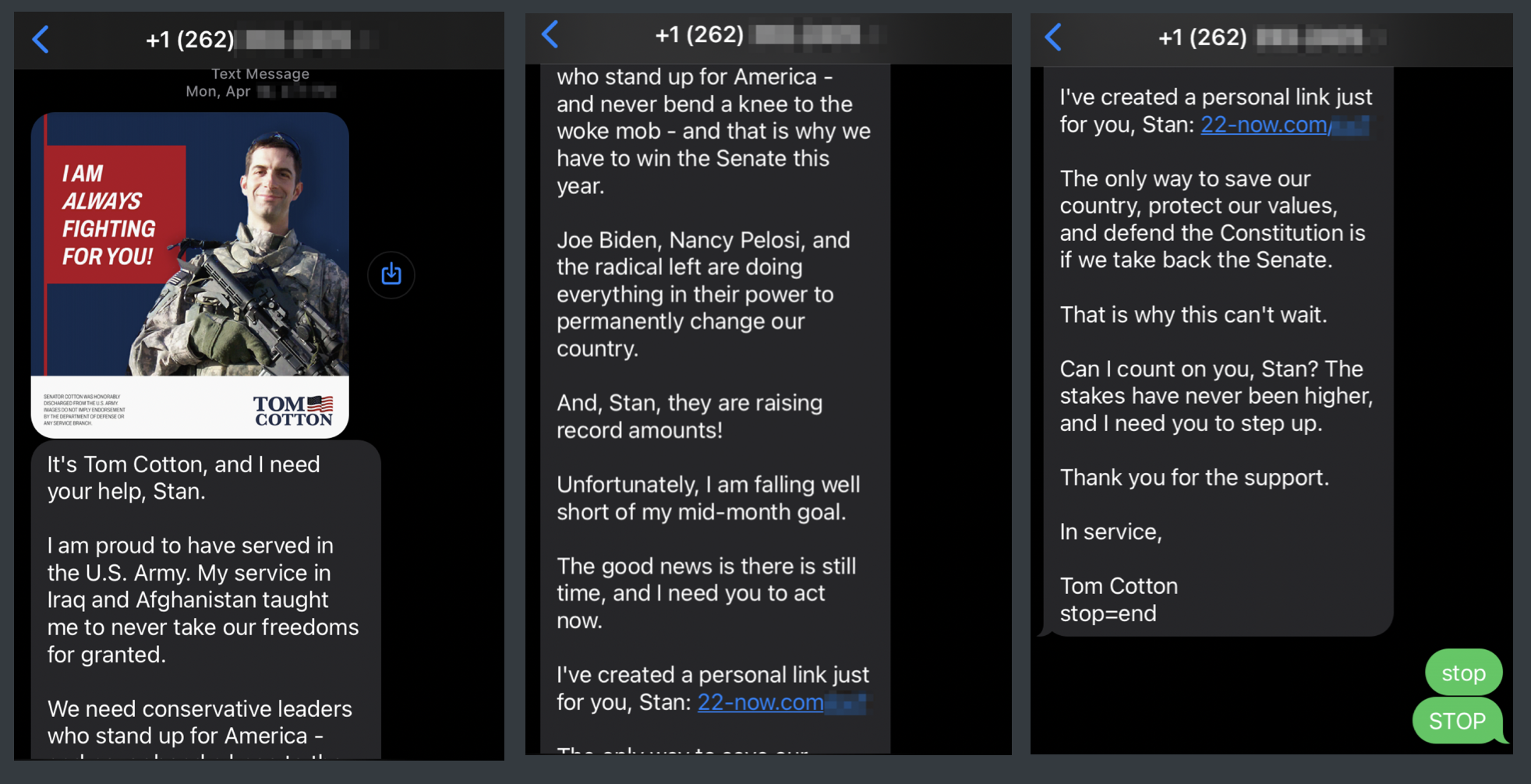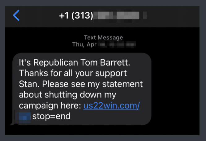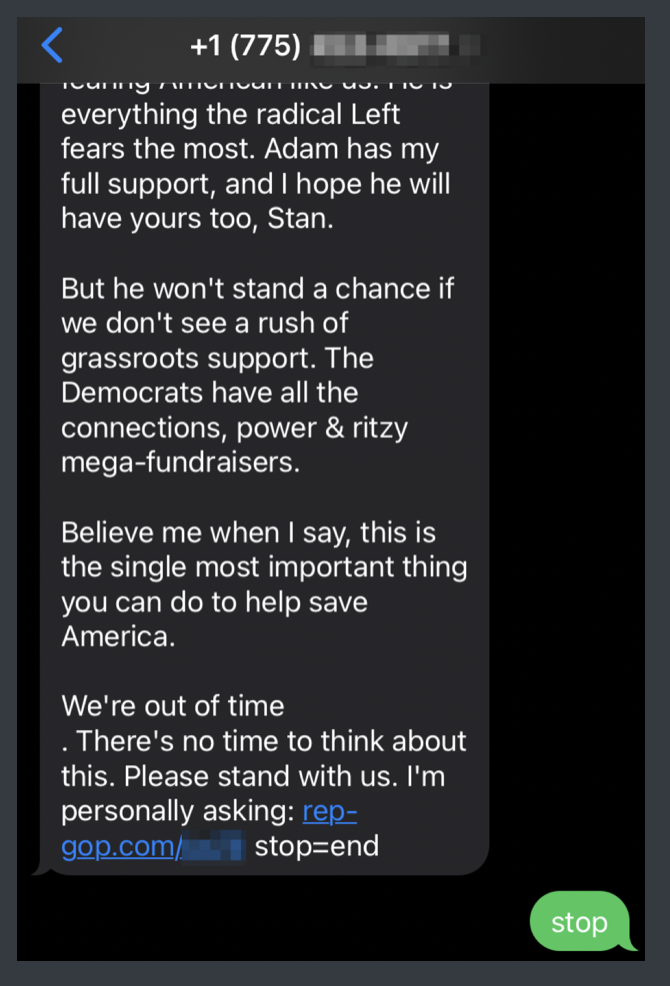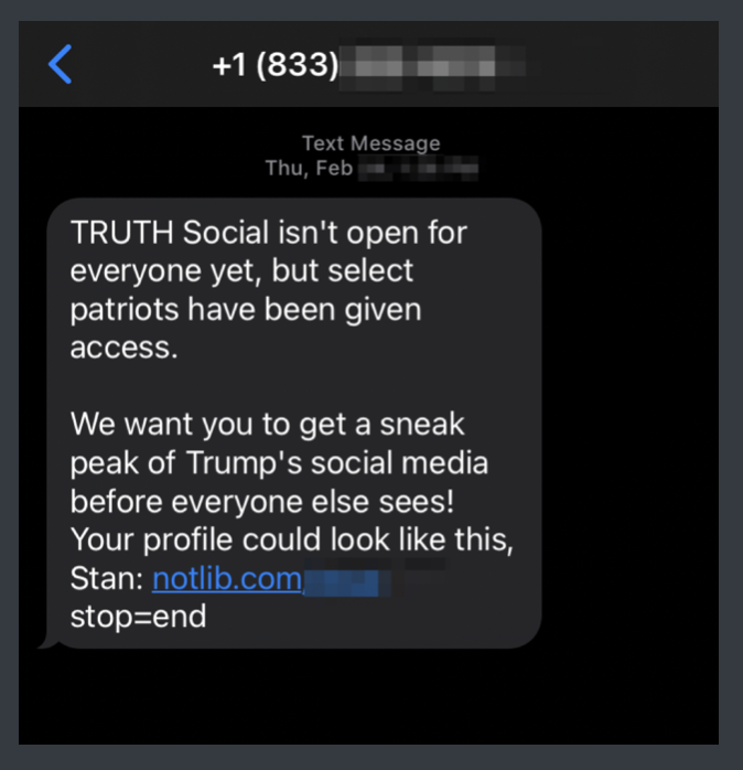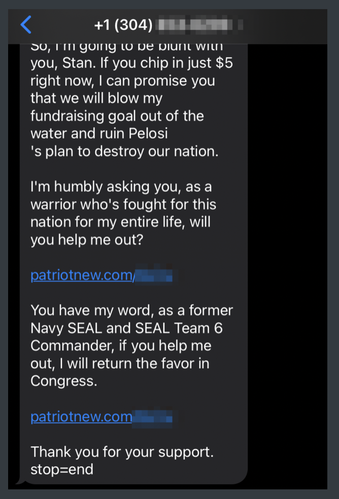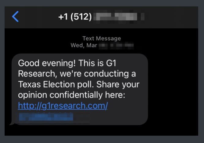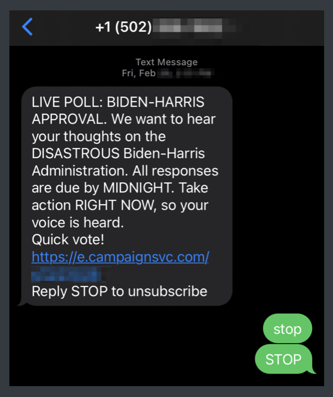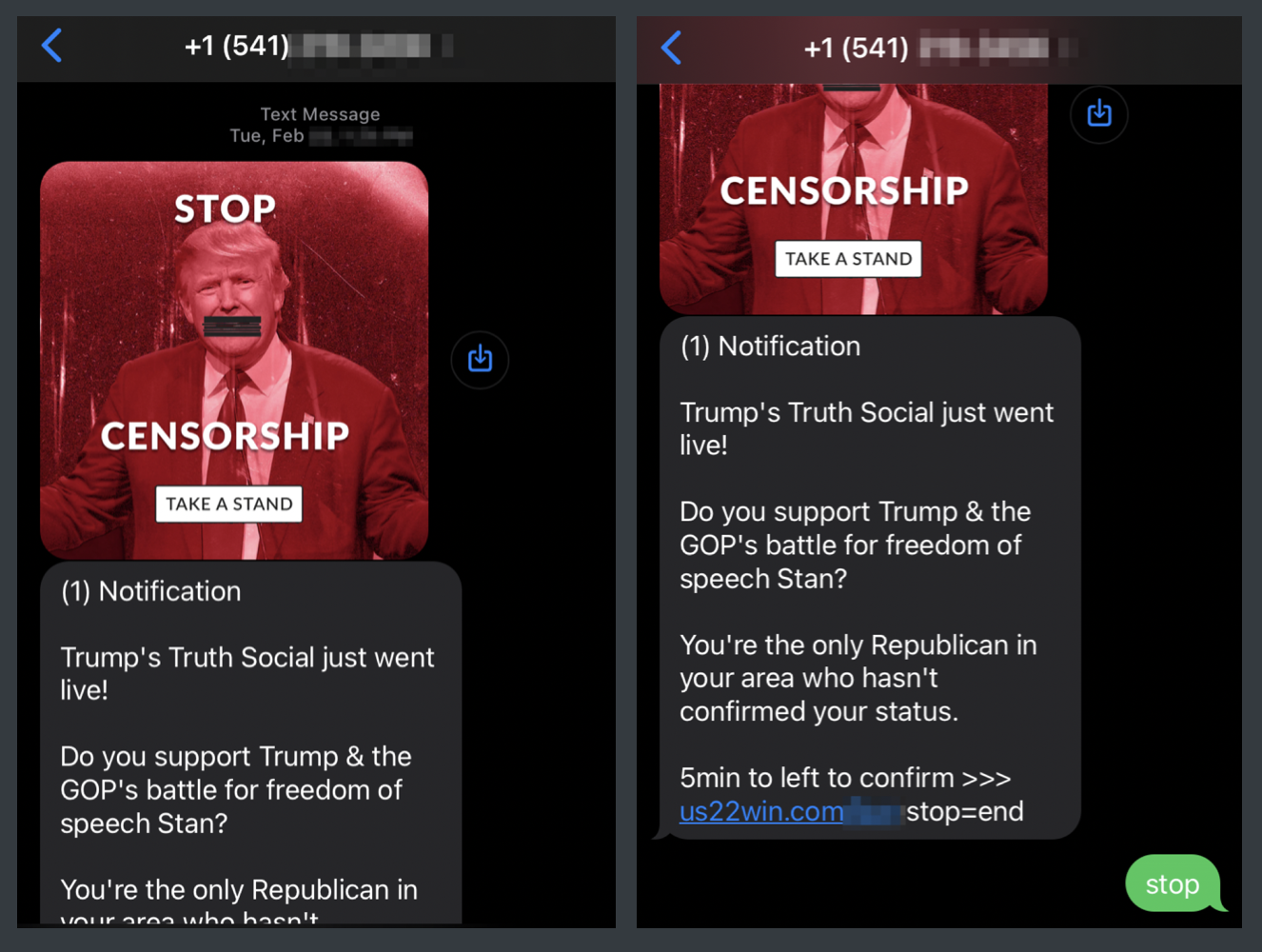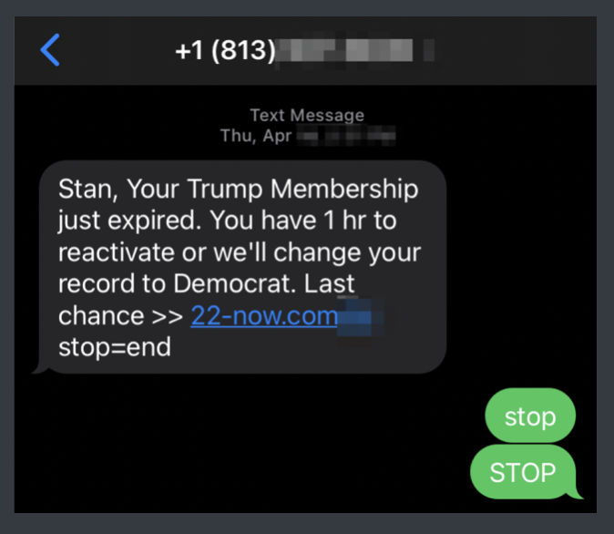 On August 10, 2022, I received a text message while on roaming and decided to see if I could take a similar approach to the political messages as I do banking fraud.