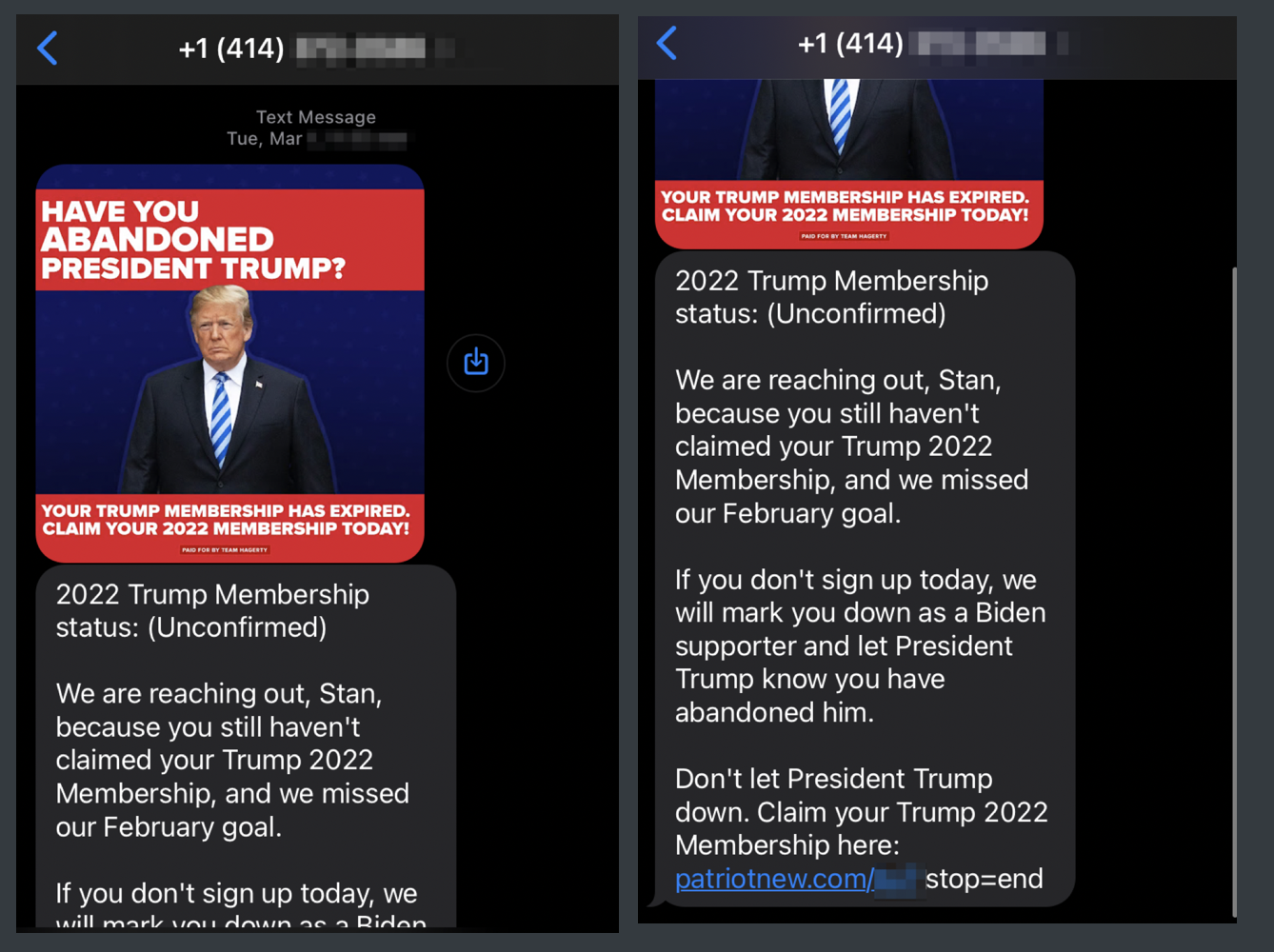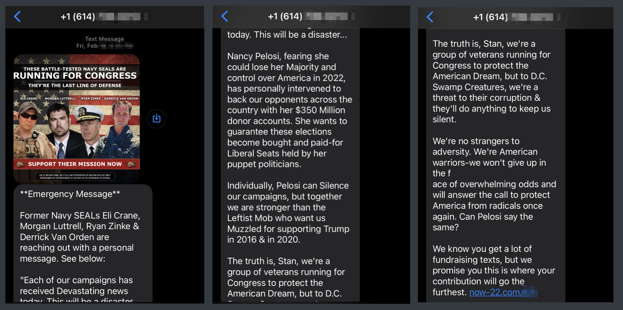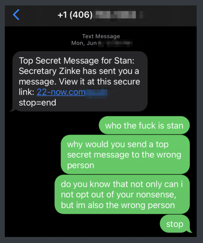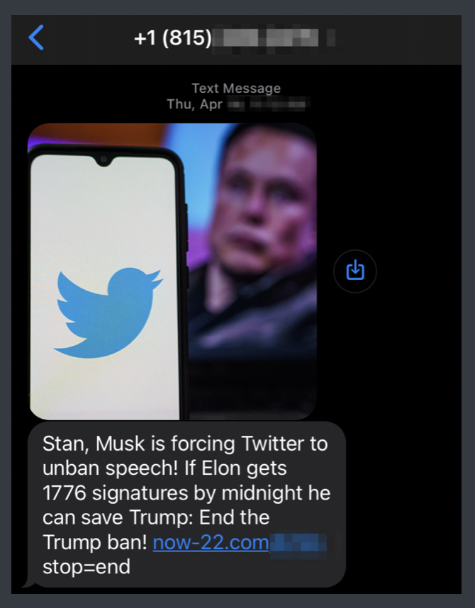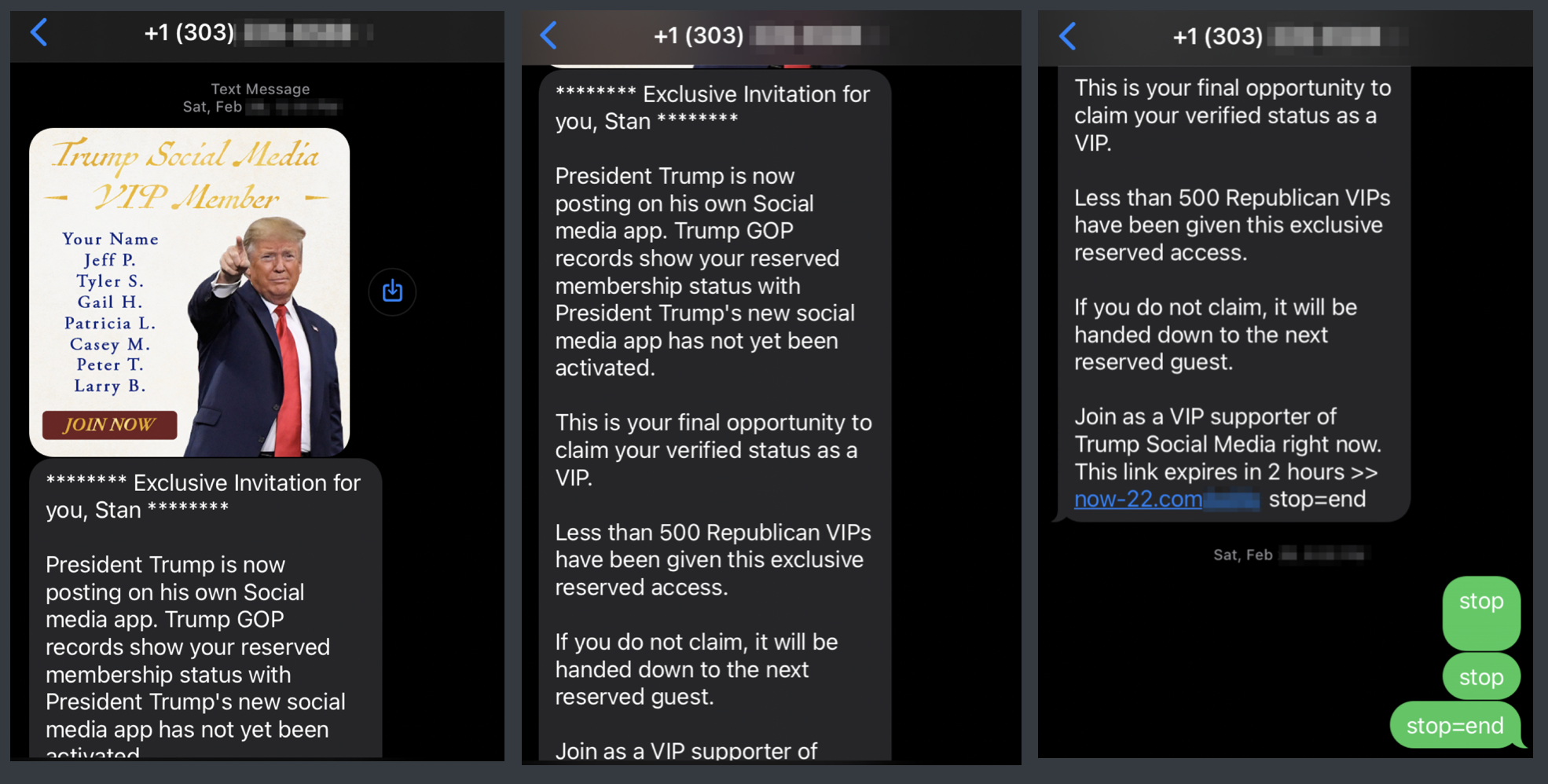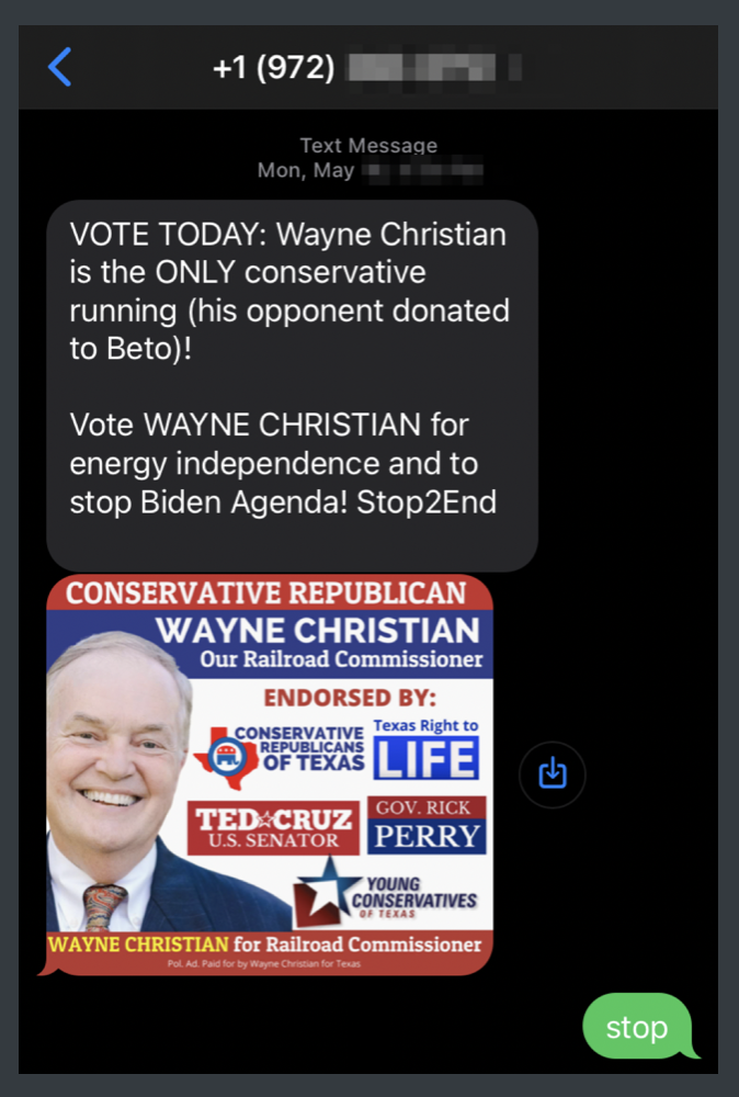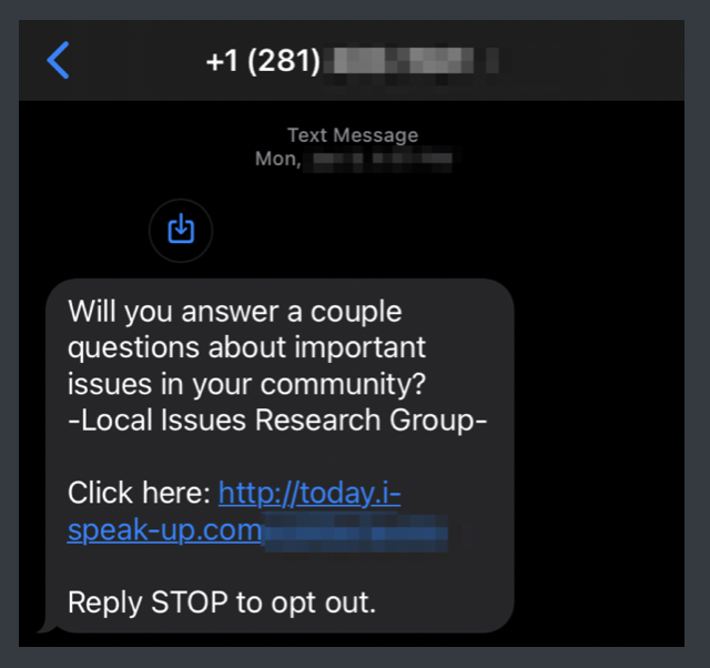On August 10, 2022, I received a text message while on roaming and decided to see if I could take a similar approach to the political messages as I do banking fraud.