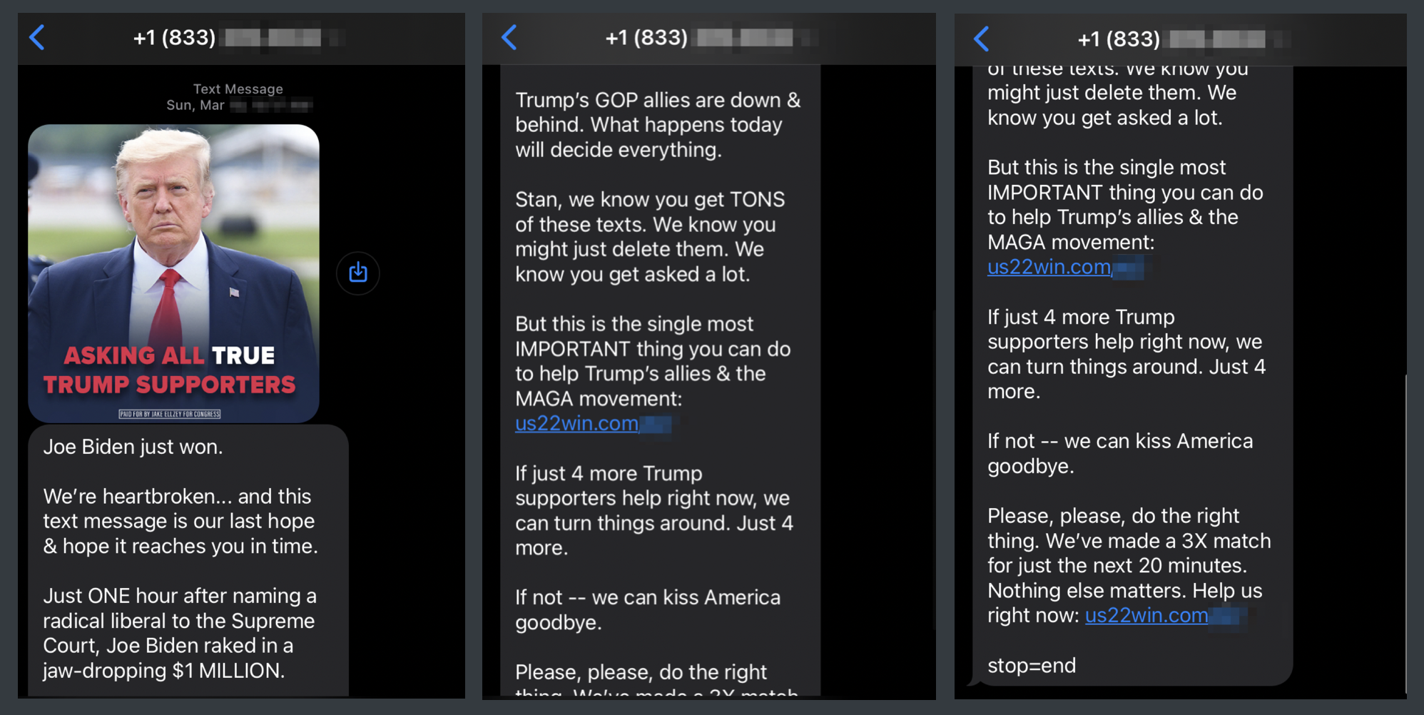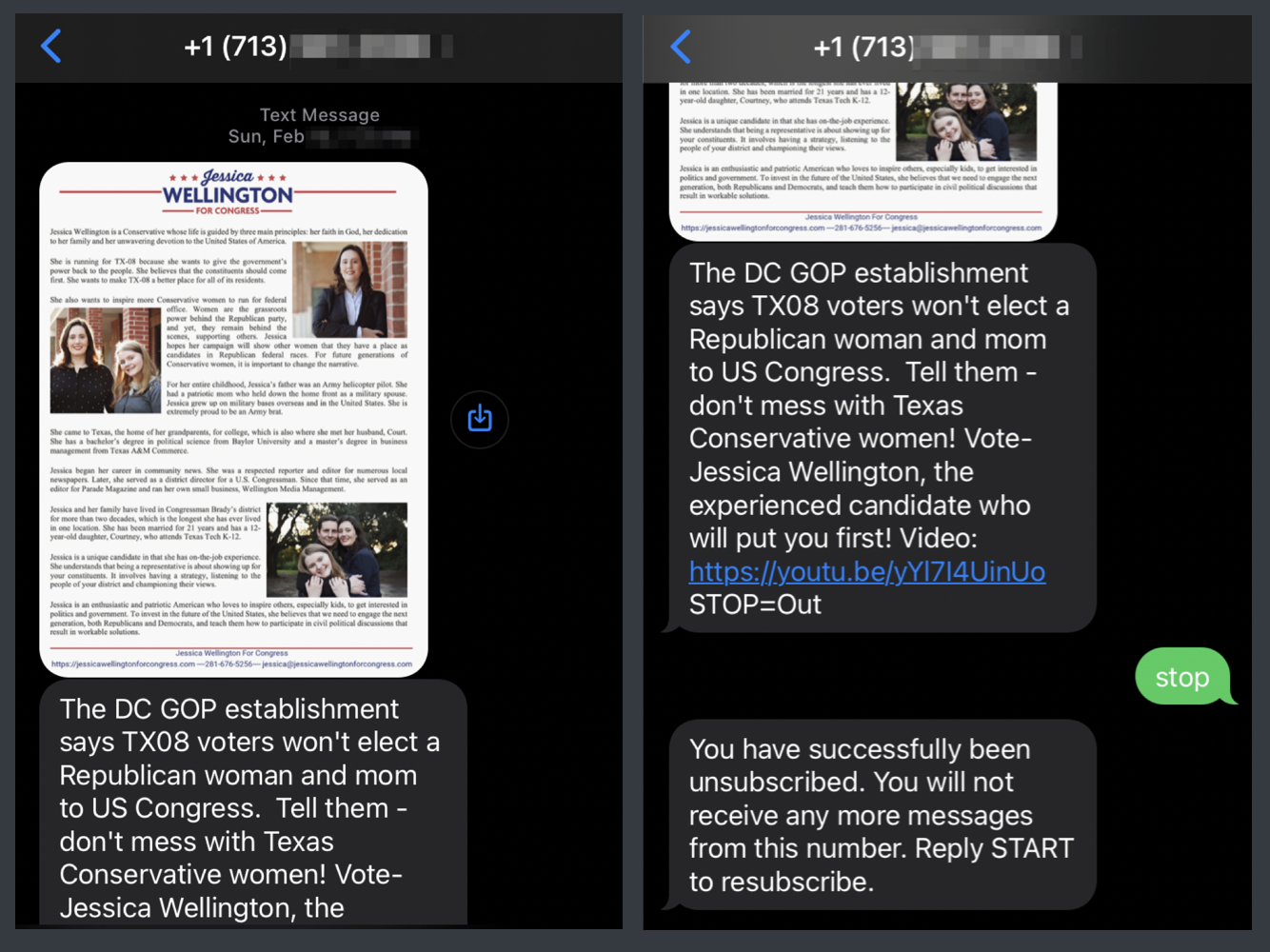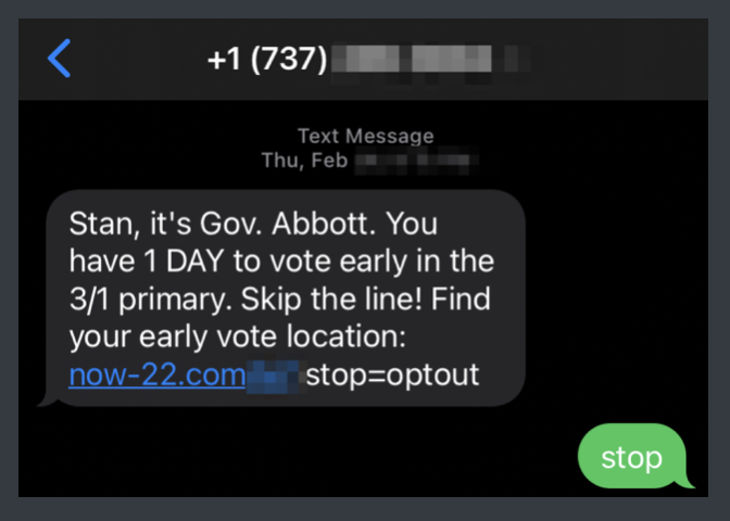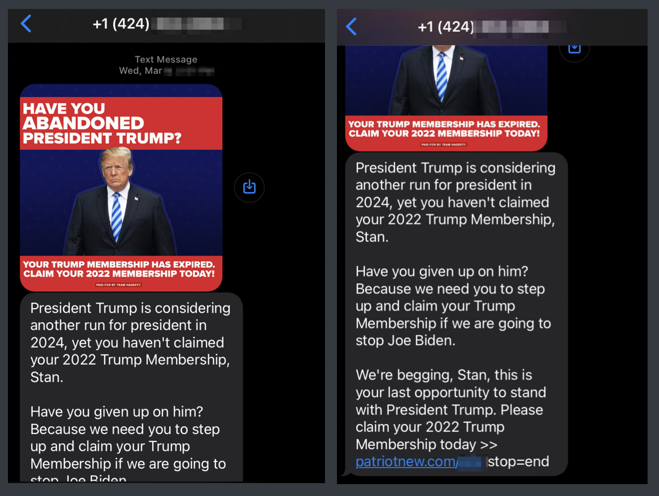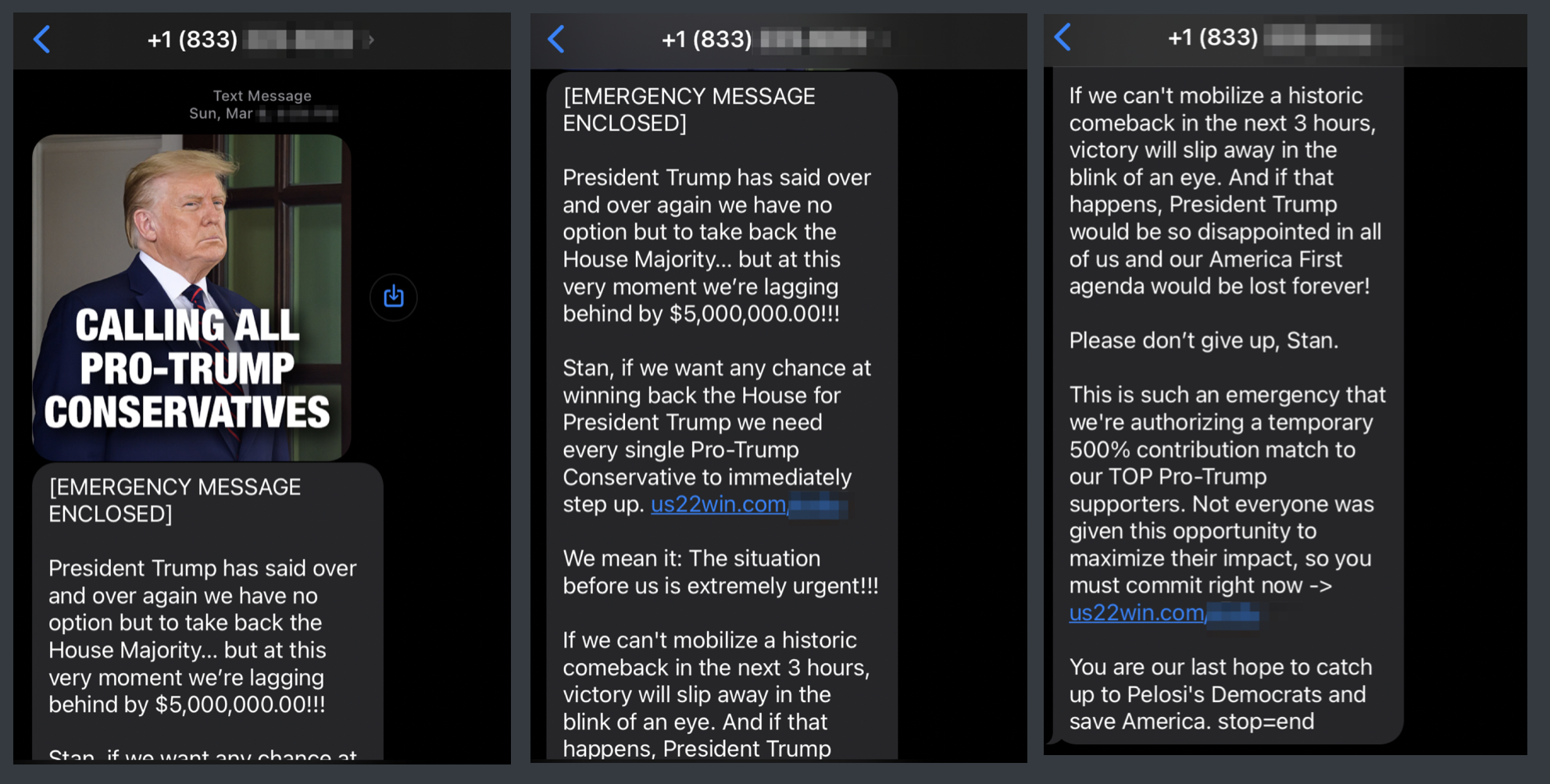 On August 10, 2022, I received a text message while on roaming and decided to see if I could take a similar approach to the political messages as I do banking fraud.