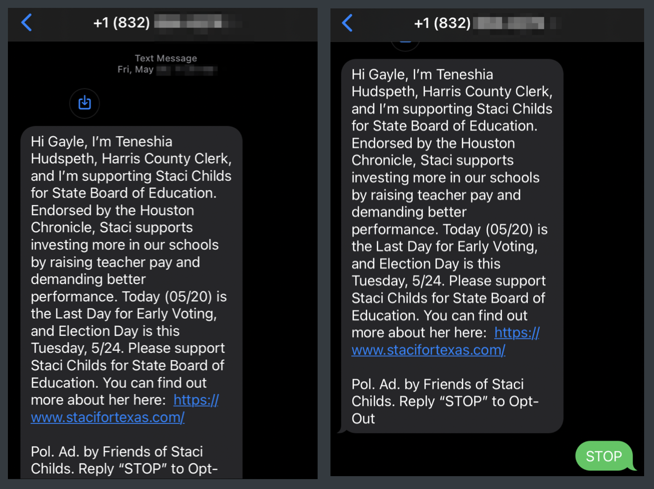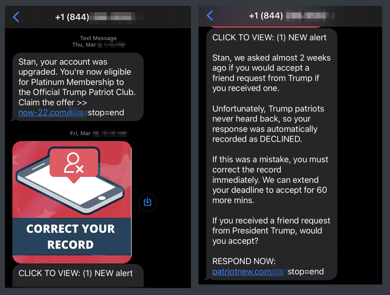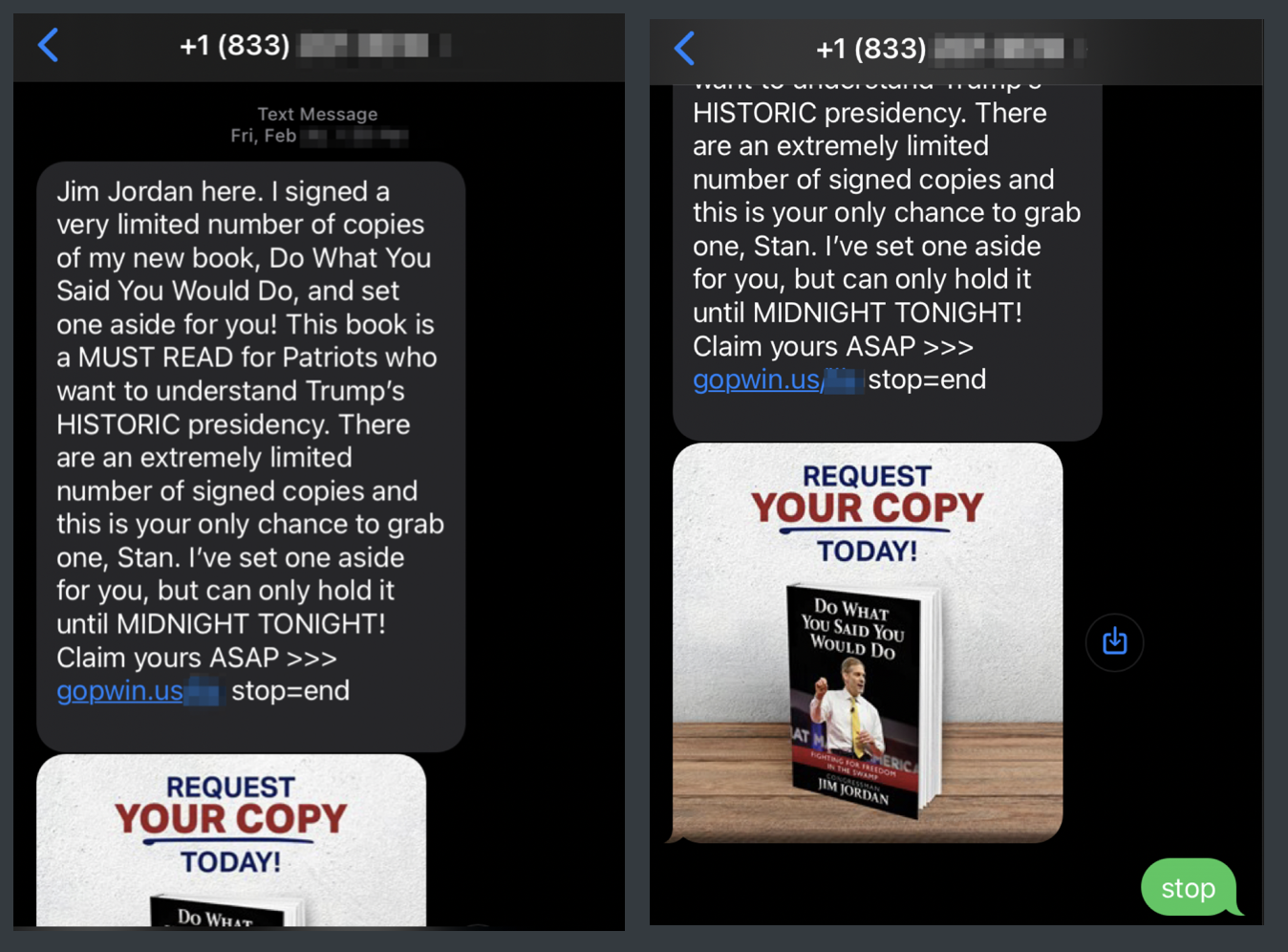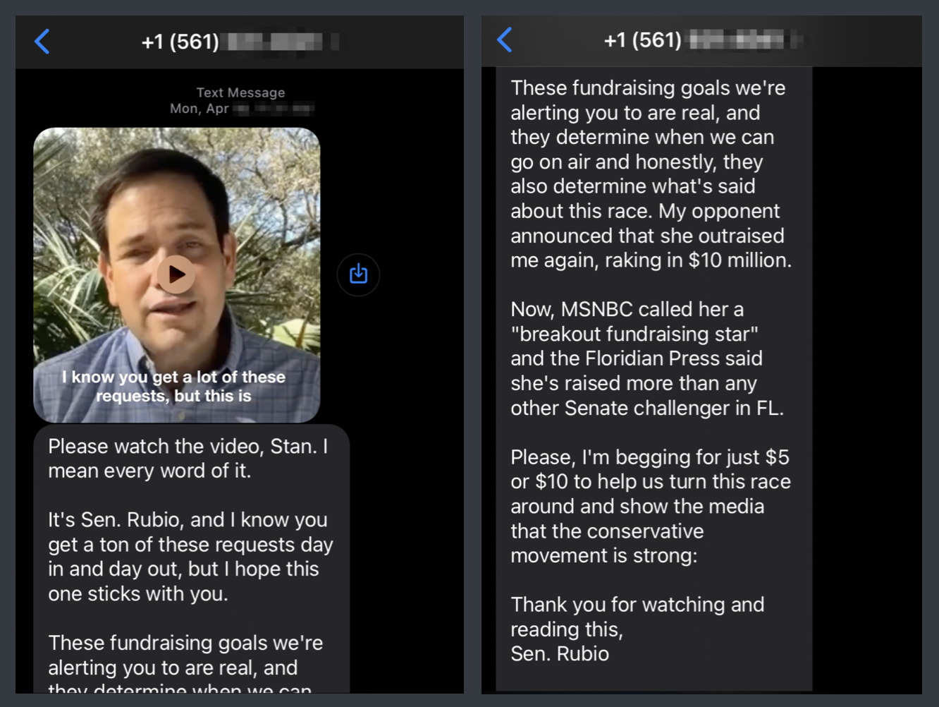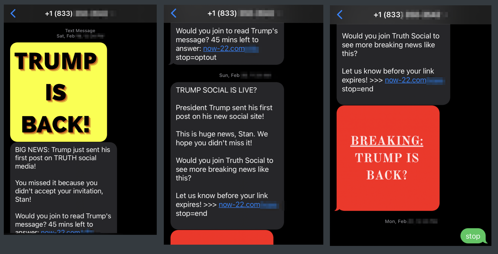 On August 10, 2022, I received a text message while on roaming and decided to see if I could take a similar approach to the political messages as I do banking fraud.