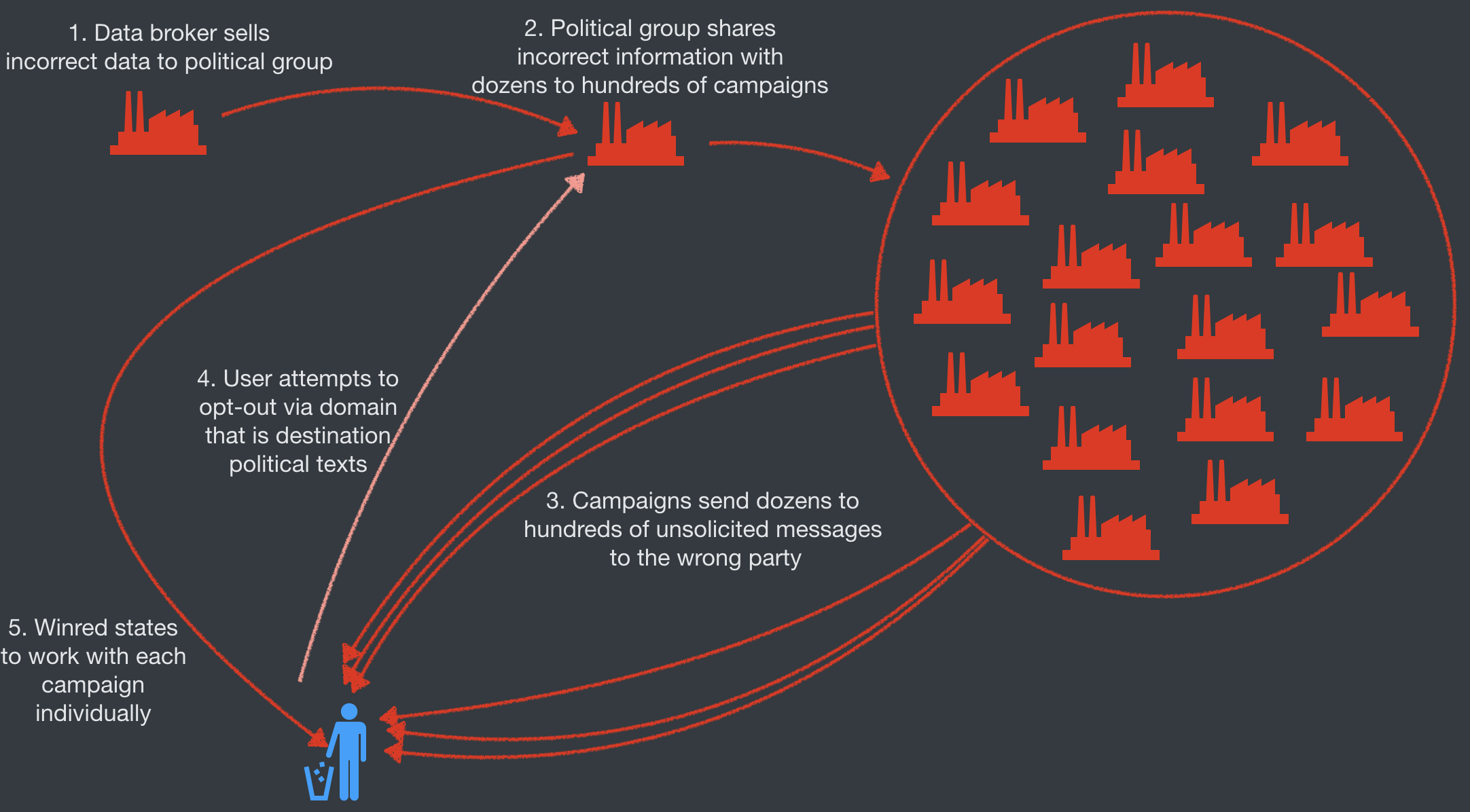Winred approach is similar to Bandwidth.com; in effect, there is no practical way to stop unsolicited messages via carriers or organizations using the carriers.